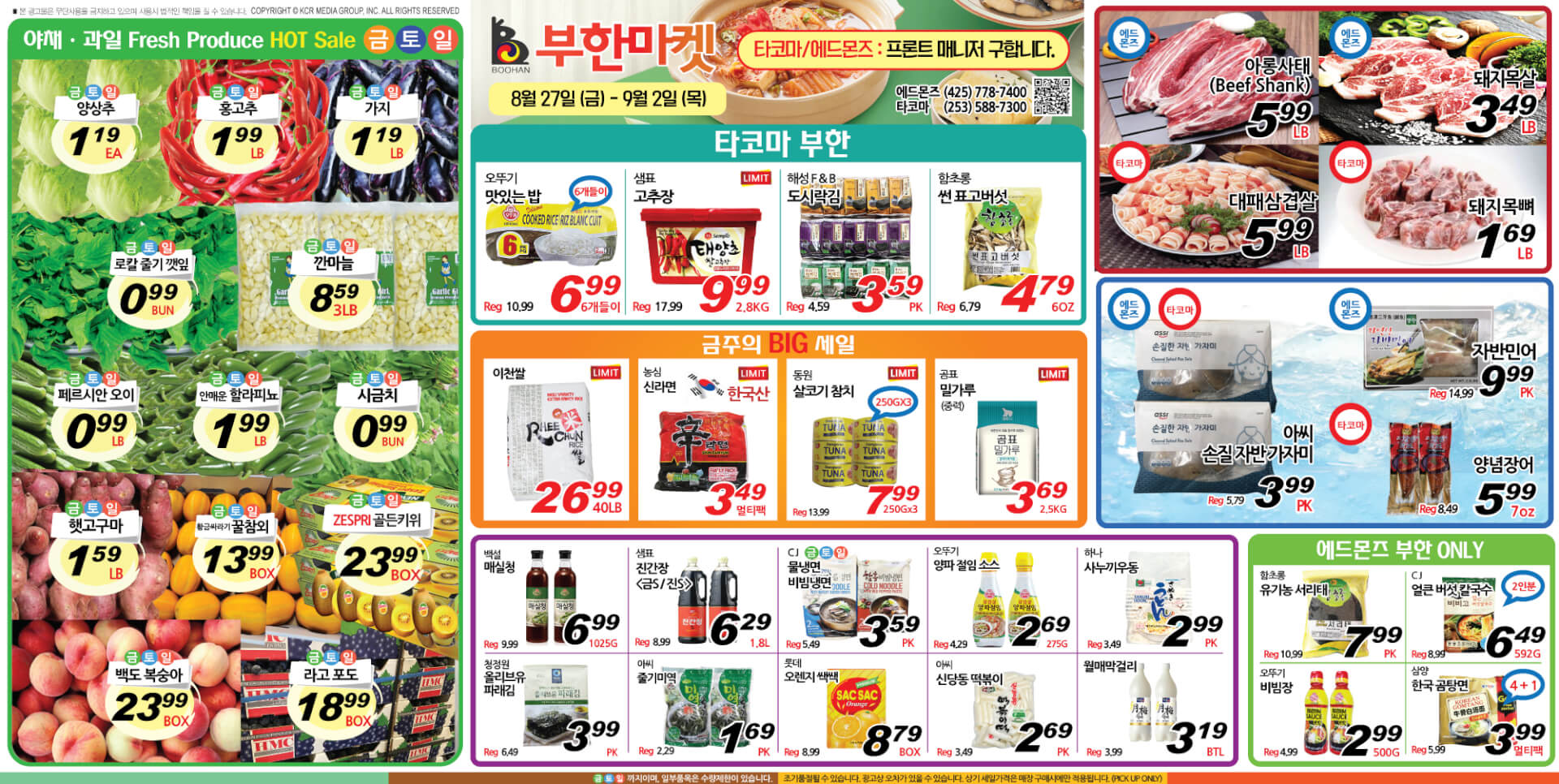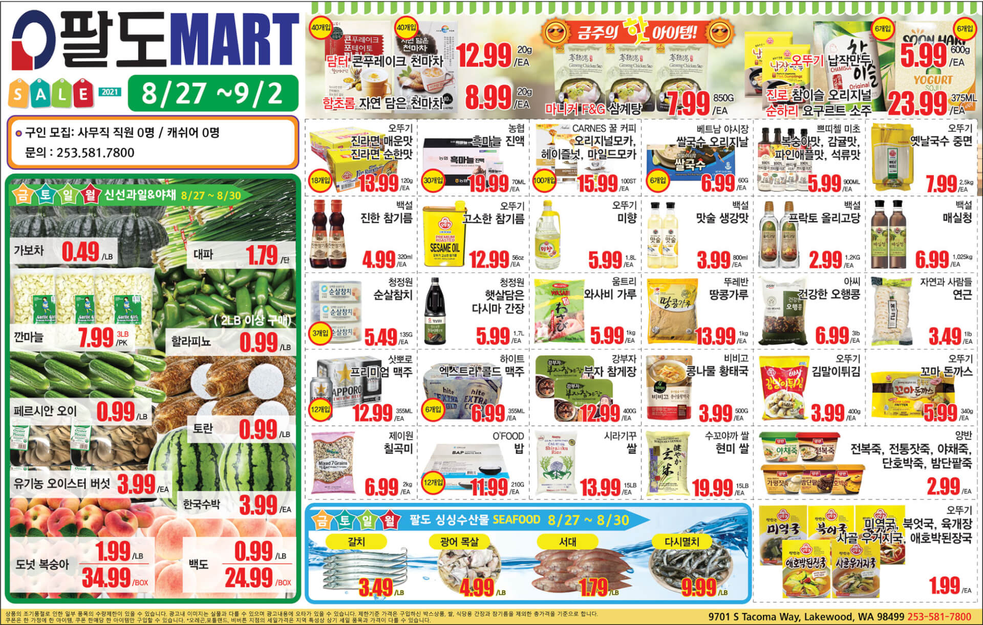 시애틀 한인마켓 주말세일정보(8월 27일~8월 30일, 9월 2일)