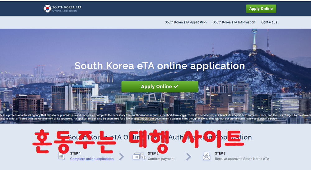 이런 가운데 마치 K-ETA 공식 홈페이지 명칭과 유사하게 만든 K-ETA 신청 대행 웹사이트(www.etasouthkoreavisa.com)가 등장해 주의가 요망된다.
