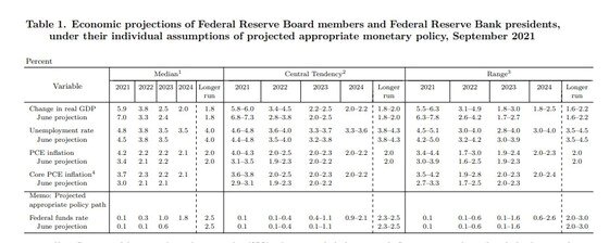 2021년 9월 경제전망© 출처-미국 연준 홈페이지 |