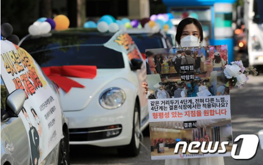 ▶많은 예비부부들이 '결혼해서 죄송합니다(결송합니다)'를 외친다고 들었다. 식사를 안 하더라도 99명은 적은 숫자라 접종완료자 중심으로 99명, 199명까지 조정하게 됐다. 앞으로 정부는 각종 인원제한을 단순화, 명료화할 방침이다. 미접종자 규모가 중요해 50명을 중심으로 50명, 100명, 200명 등 단순, 통합하는 과정이 필요할 것이다.