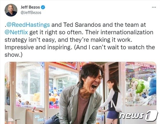 제프 베이조스 아마존 창업자가 넷플릭스의 한국 드라마 ‘오징어 게임’에 대한 기대감을 한껏 드러냈다.