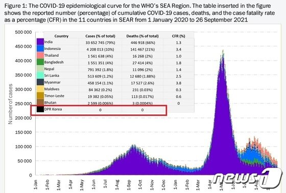 세계보건기구(WHO) 남·동아시아 사무소의 올해 38주차(10월1일자) '코로나19 주간 상황 보고서'에 따르면 북한 보건성은 지난달 23일까지 총 4만700명의 주민을 상대로 코로나19 진단검사를 실시했다고 보고했다. 이는 9월16일 기준 누적 검사자 수 4만33명보다 667명 많은 것이다.