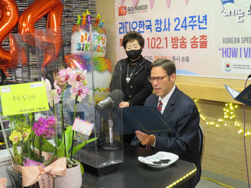 이 자리에서 페럴 시장은 매년 10월 1일을 ‘라디오한국의 날’로 선포하는 인정서를 영어와 한국어로 전달했다.