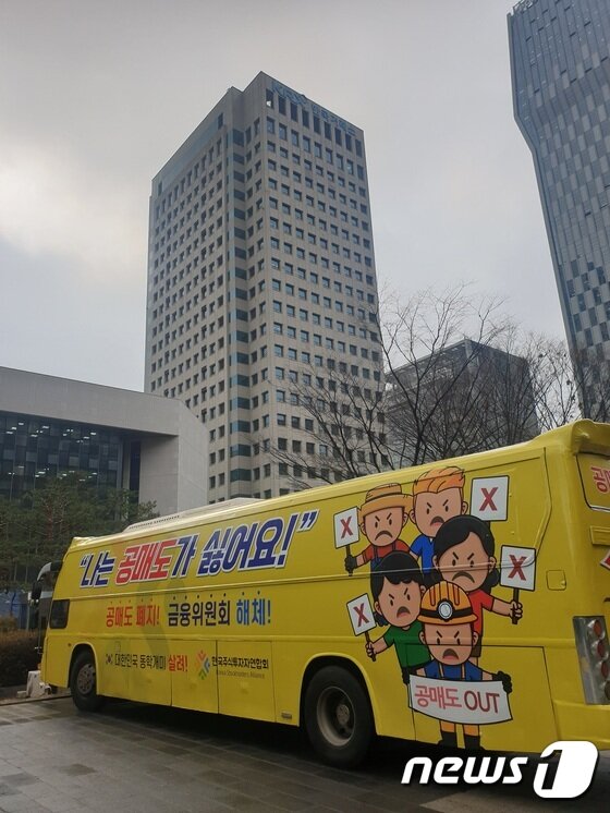여의도 한국거래소 앞에 나타난 공매도 반대버스. 2021.02.01 @뉴스1 강은성기자 |