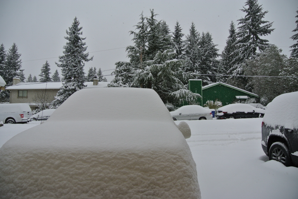 기상청에 따르면 13일 시애틀시의 공식 기상관측소인 시택공항을 기준으로 8.9인치의 폭설이 내렸다. 이같은 폭설량은 1967년 1월27일 하루동안 14.9인치가 내린 것에 이어 52년 만에 하루 강설량으로는 최대인 것으로 파악됐다.