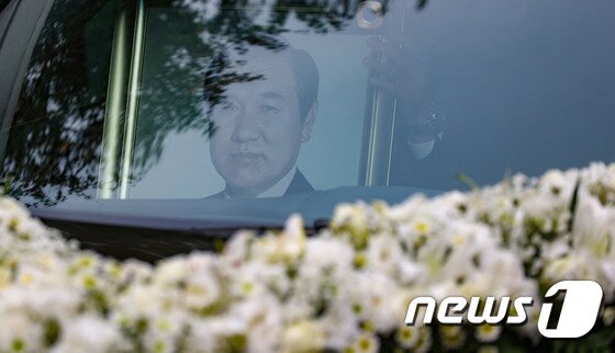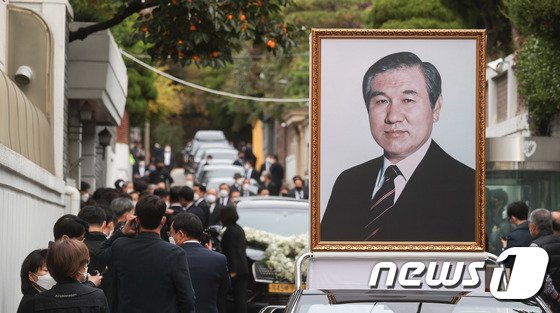 30일 오전 서울 서대문구에 위치한 사저에서 열린 고(故) 노태우 전 대통령의 노제를 마친 뒤 노 전 대통령의 영정이 운구차량에 놓이고 있다. 2021.10.30/뉴스1 © News1 박세연 기자 |