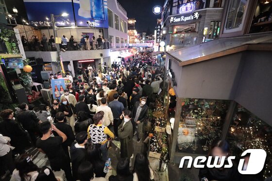 핼러윈 데이를 하루 앞둔 30일 서울 용산구 이태원역 일대가 시민들이 북적이고 있다. 2021.10.30/뉴스1 © News1 이성철 기자 |