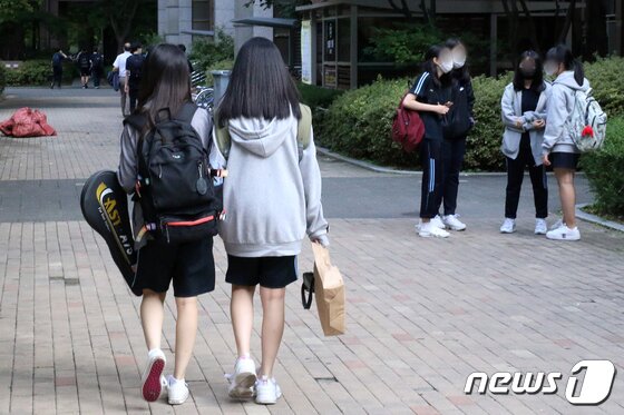 서울 시내 한 중학교 학생들이 하교하는 모습./뉴스1 © News1 노선웅 기자 |
