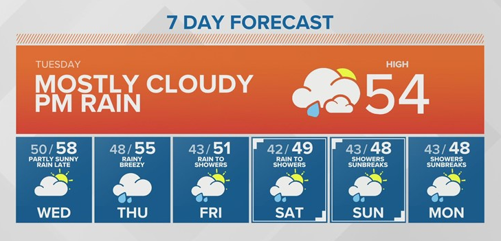 플릿치는 1일 오후에 첫 강우전선이 시애틀지역을 지나간 후 이번 주에 3~4 차례 더 내릴 것으로 예상된다며 흐리고 때로 강한 바람과 함께 비가 쏟아지다가 구름이 걷히는 등 시애틀을 비롯한 서부 워싱턴주 주민들에게 익숙한 11월 날씨가 이어질 것이라고 예보했다.