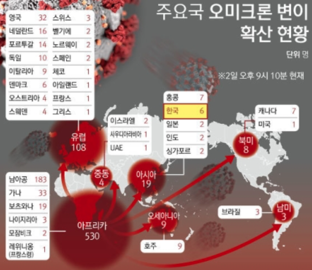 2일엔 이들 목사 부부의 아들도 오미크론 변이에 감염된 것으로 확인되면서 누적 확진자는 6명으로 늘었다. 접촉자 추적조사와 변이 분석검사 결과에 따라 오미크론 감염자가 급증할 가능성이 있다.