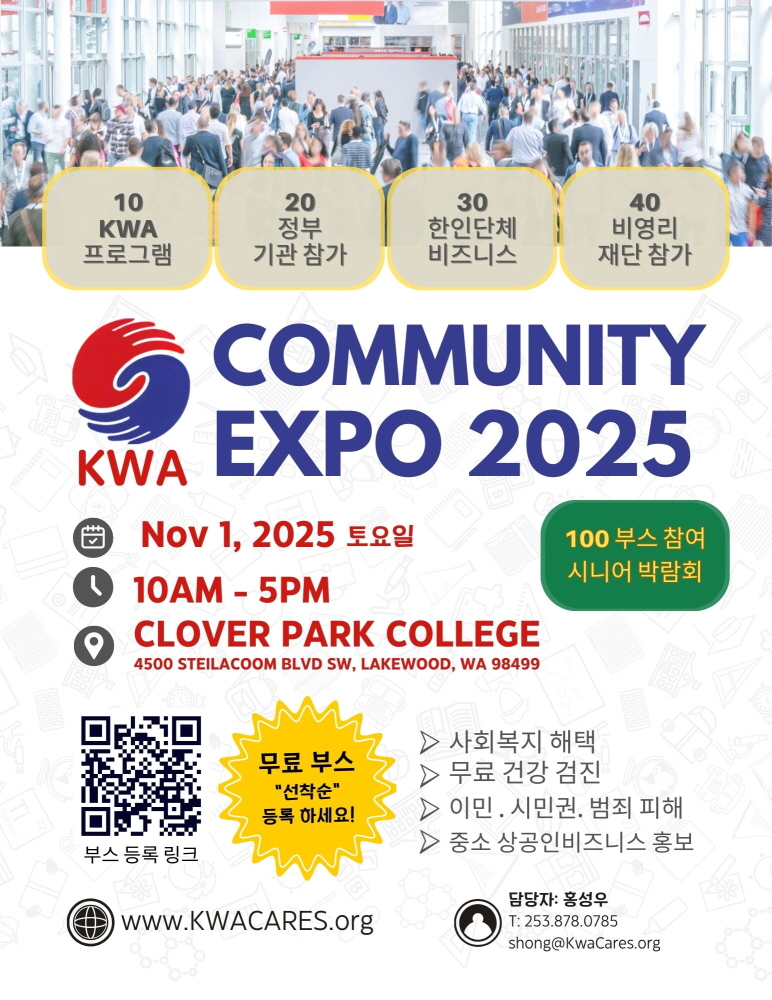 대한부인회는 “이번 커뮤니티 엑스포는 단순한 행사가 아니라 워싱턴주 다민족 사회의 정보 교류와 네트워킹의 장이 될 것”이라며, 한인 단체와 비즈니스의 적극적인 참여와 후원을 요청했다.